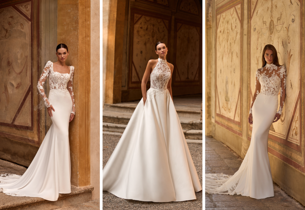 A kollekció darabjai valóban a végtelen kifinomultság és a modern elegancia találkozását jelentik. Egyes modellek a letisztult menyasszonyi ruha stílusának eleganciáját hangsúlyozzák, míg mások romantikus csipkékkel, légies anyagokkal és aprólékosan kidolgozott részletekkel mesélnek a menyasszonyi divat új korszakáról.